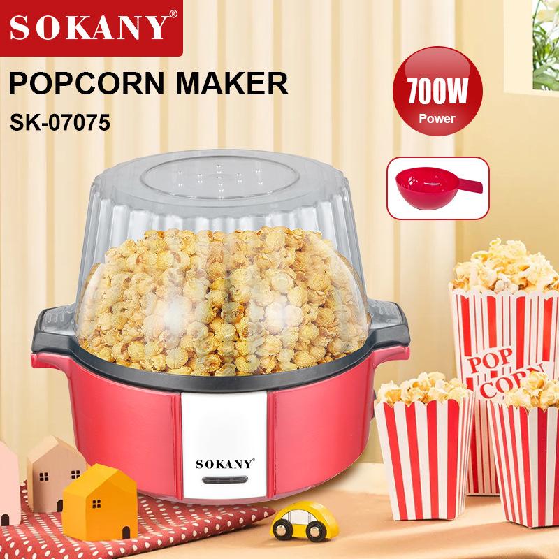 Попкорниця Sokany SK-07075 дозволяє за один раз приготувати до 60 гр зерен. Модель має потужність 700 Вт, тому на приготування попкорну витрачаються лічені хвилини.