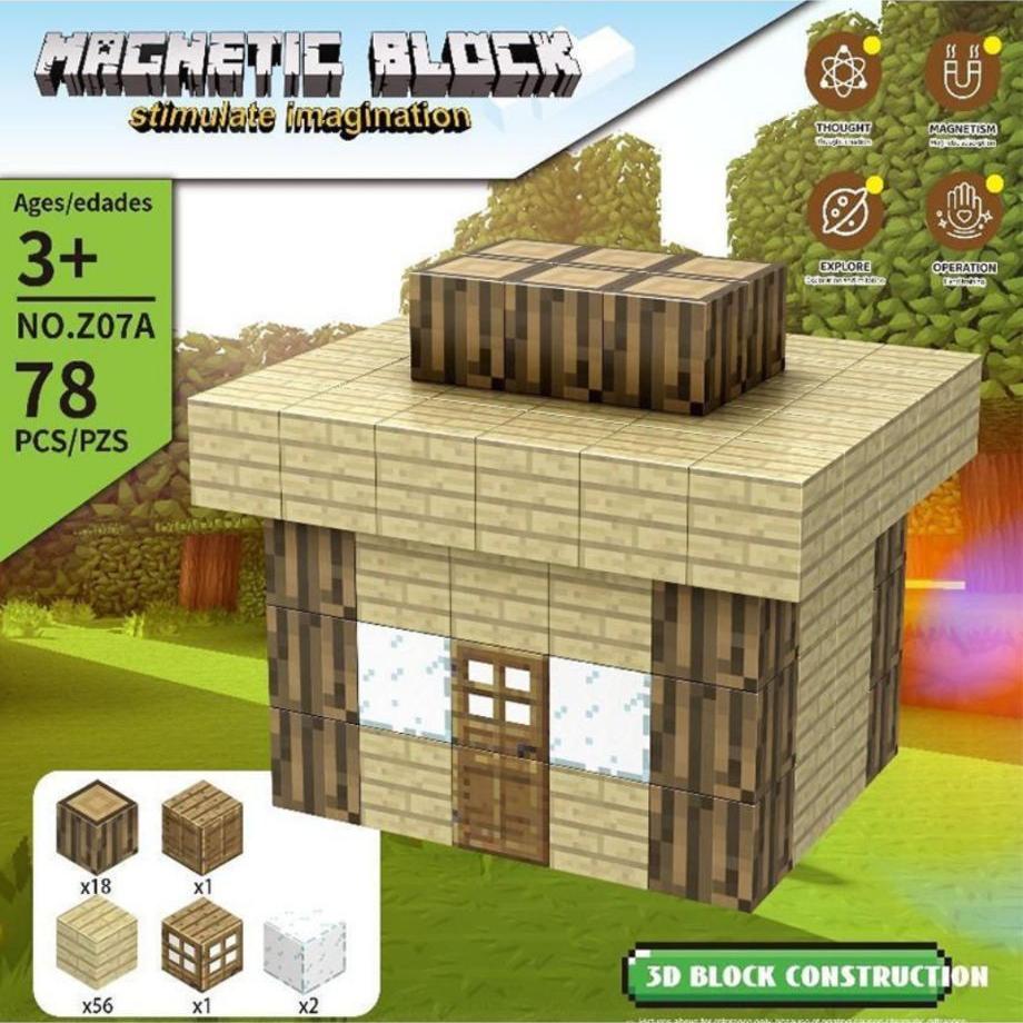 Магнітний конструктор у стилі Minecraft будинок з дуба та березових дощок 78 деталей.